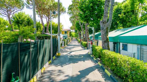 Le piazzole completamente ombreggiate, dotate di attacco per energia elettrica, sono rialzate rispetto alle strade interne che a loro volta sono antipolvere, asfaltate e piastrellate.